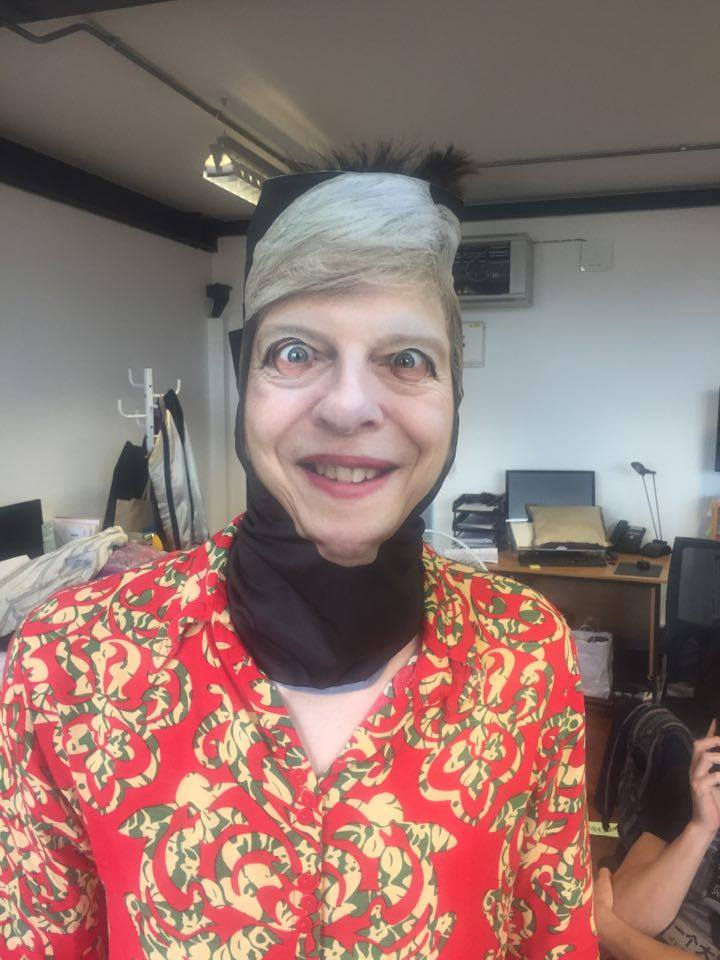 I spent a really fun yesterday working on a new, as-yet untitled topical comedy project with a bunch of excellent, talented people. The project is the brainchild of producer/co-writer Alex Hardy, and essentially combines a load of social media apps and trends with some satirical silliness to present a bunch of political talking-head nonsense as refracted through the filter of a Facebook profile. Difficult to explain, really, but it's a great concept and the two-day shoot produced a load of really brilliant stuff. I was part of the writing team, which also included Catherine Brinkworth, Benjamin Alborough, Eleanor Morton, Natt Tapley, Sooz Kempner and Mark Stephenson. I also provide the voices of Tim Farron and Paul Nuttall, and the whole thing was directed by Matthew Highton. It's currently being edited and we're hoping to have it out online in time for the election on Thursday, so watch this space! Congratulations to all involved for a great shoot, and thanks to Alex for having me be part of a really fun project. Here's a picture of me trying out one of the Theresa May masks: