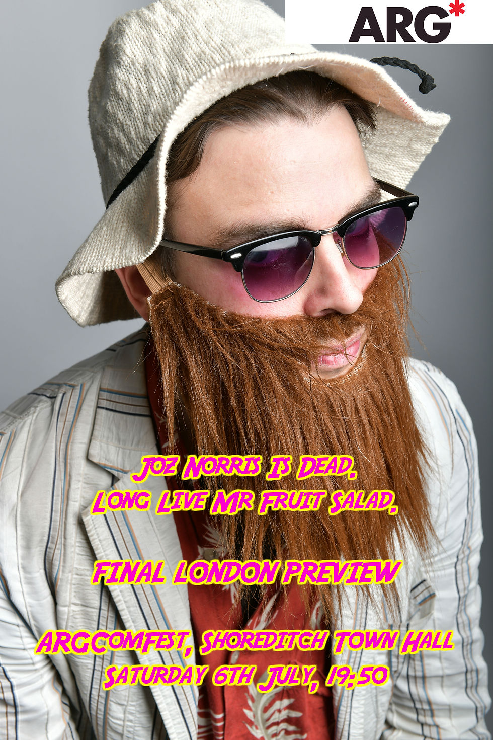 If you're going to be at ARGComFest in a couple of weeks, then that's your final opportunity to see my new show in London before it goes up to the Fringe. And if you're NOT gonna be at ARG, and not going up to the Fringe, then hey, bad luck. Cross your fingers for a London transfer I guess! Tickets and info for ARG are here.